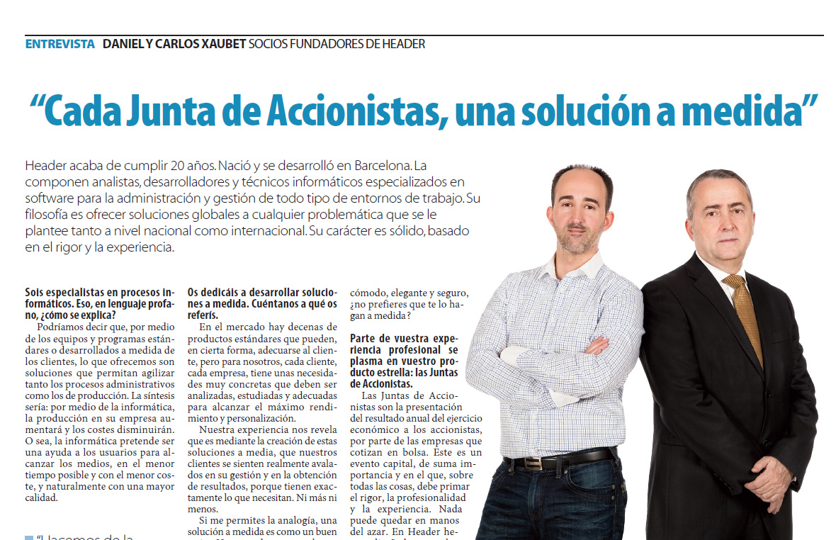 Nace HEADER AGM (Annual General Mettings) una rama de la empresa especializada en Juntas, consultoría y soluciones a sociedades cotizadas, en cuestiones relacionas con el buen gobierno, Relaciones con inversores, herramientas y aplicaciones de analisis de datos financieros, soporte a la Junta General, etc.